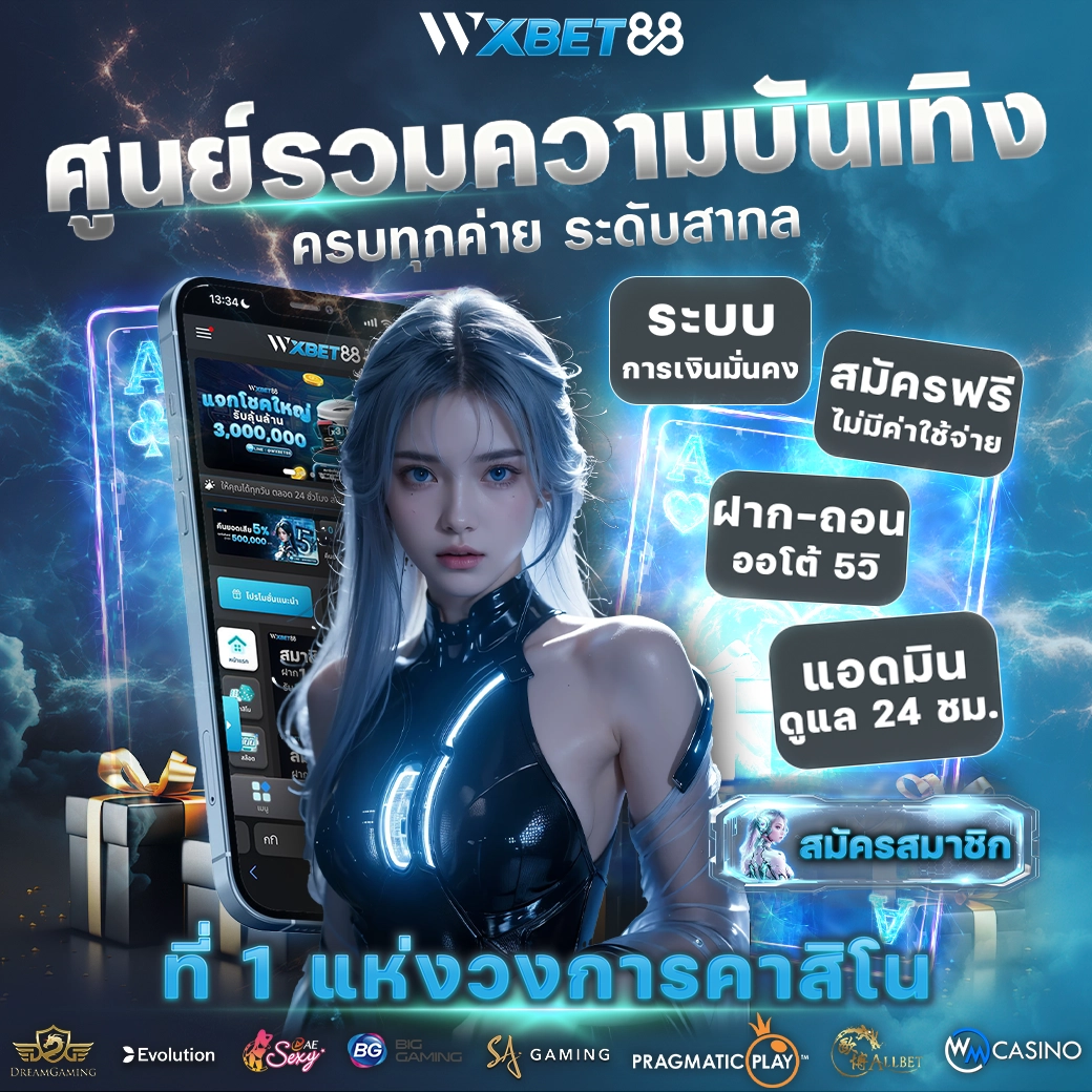 ที่เรา คุณจะได้พบกับเกมคาสิโนออนไลน์ที่หลากหลาย ทั้งบาคาร่า, รูเล็ต, แบล็คแจ็ค, และเกมสล็อตจากค่ายชั้นนำทั่วโลก ทุกเกมได้รับการตรวจสอบและรับรองเพื่อให้มั่นใจในความยุติธรรมและความโปร่งใสในการเล่น นอกจากนี้ ระบบการทำธุรกรรมของเรายังเป็นไปตามมาตรฐานสูงสุดเพื่อให้คุณสามารถทำธุรกรรมการฝาก-ถอนเงินได้อย่างรวดเร็วและปลอดภัยเรามุ่งมั่นที่จะให้บริการที่ดีที่สุดและสร้างความเชื่อมั่นให้กับสมาชิกทุกคน Wxbet88 ด้วยทีมงานมืออาชีพที่พร้อมให้ความช่วยเหลือและสนับสนุนคุณตลอด 24 ชั่วโมง คุณสามารถเล่นเกมที่คุณชื่นชอบได้โดยไม่มีข้อกังวลเรื่องความปลอดภัยสมัครสมาชิกกับเราวันนี้เพื่อสัมผัสประสบการณ์การเดิมพันออนไลน์ที่เป็นเว็บแท้และปลอดภัย พร้อมรับโปรโมชั่นและข้อเสนอพิเศษที่เราจัดเตรียมไว้สำหรับคุณ!